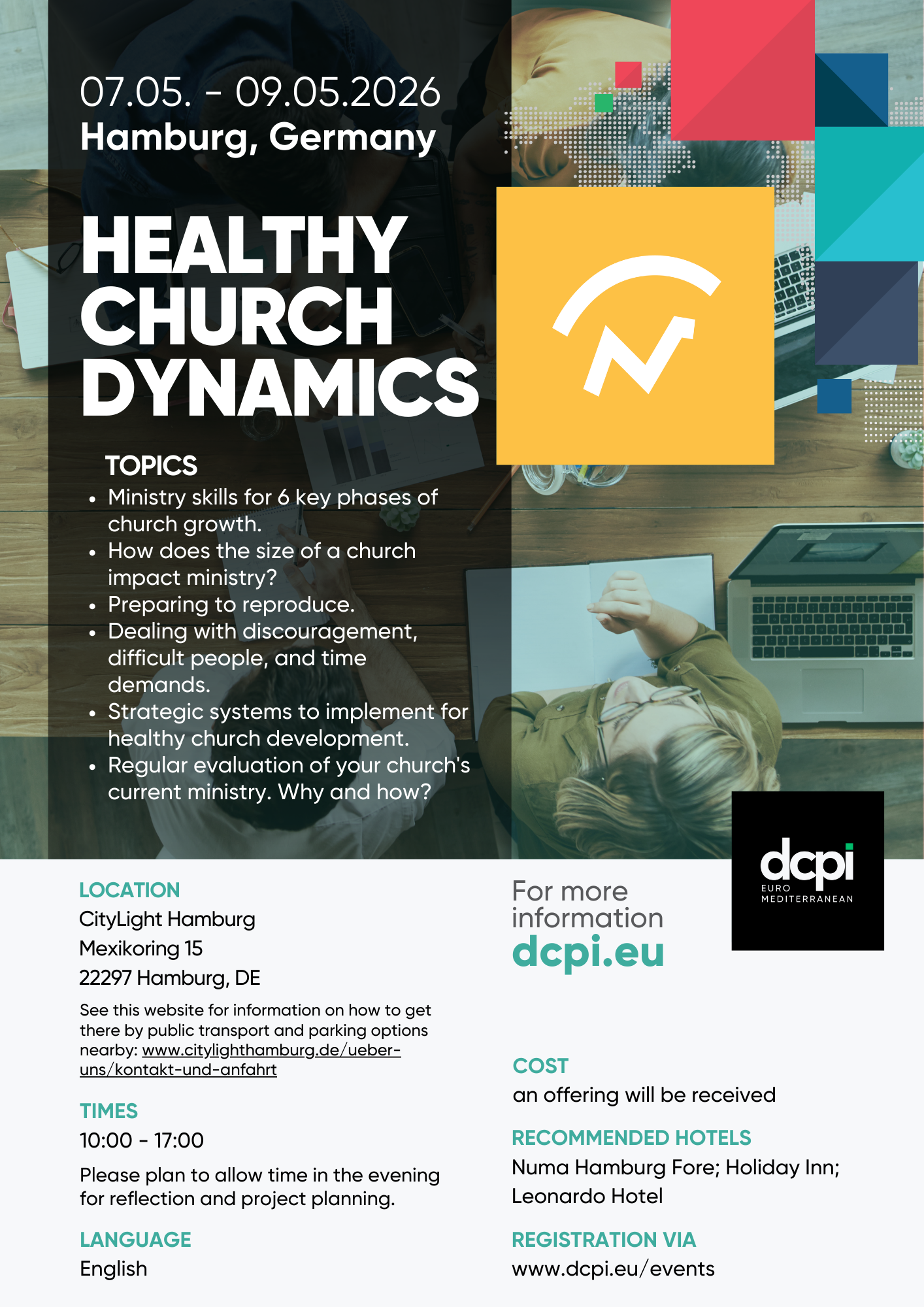 Dynamic Church Planting International (DCPI) is a 501(c)3 non-profit organization founded in 1994 in the USA with the vision of training leaders in every country of the world to plant dynamic churches to reach the world for Jesus. In 2023, we officially founded the DCPI Euro-Mediterranean non-profit to serve Euro-Med more effectively. We offer all of our trainings free of charge, so that hundreds of thousands of men and women called by God can take the Gospel to their tribes, tongues, and nations. We offer 8 tracks of training built upon biblical principles and actionable applications, so DCPI churches are effective and healthy. In 2021, we celebrated 1 MILLION churches!