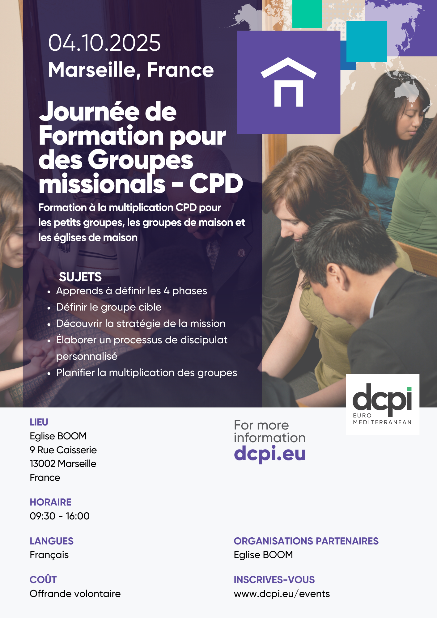 Are you already a DCPI Certified Trainer, Master Trainer or Senior Master Trainer? If yes, then this is for you! Come to learn more about the adjusted Church Planting Discipleship we are calling Training Day for Missional Groups. In this training day, each participant will learn to define the 4 phases, define the target group, discover missionary strategy, develop a customized discipleship process, and plan the group multiplication. This training is by far the most interactive and gives participants the opportunity to discuss together in a groups throughout the training day.