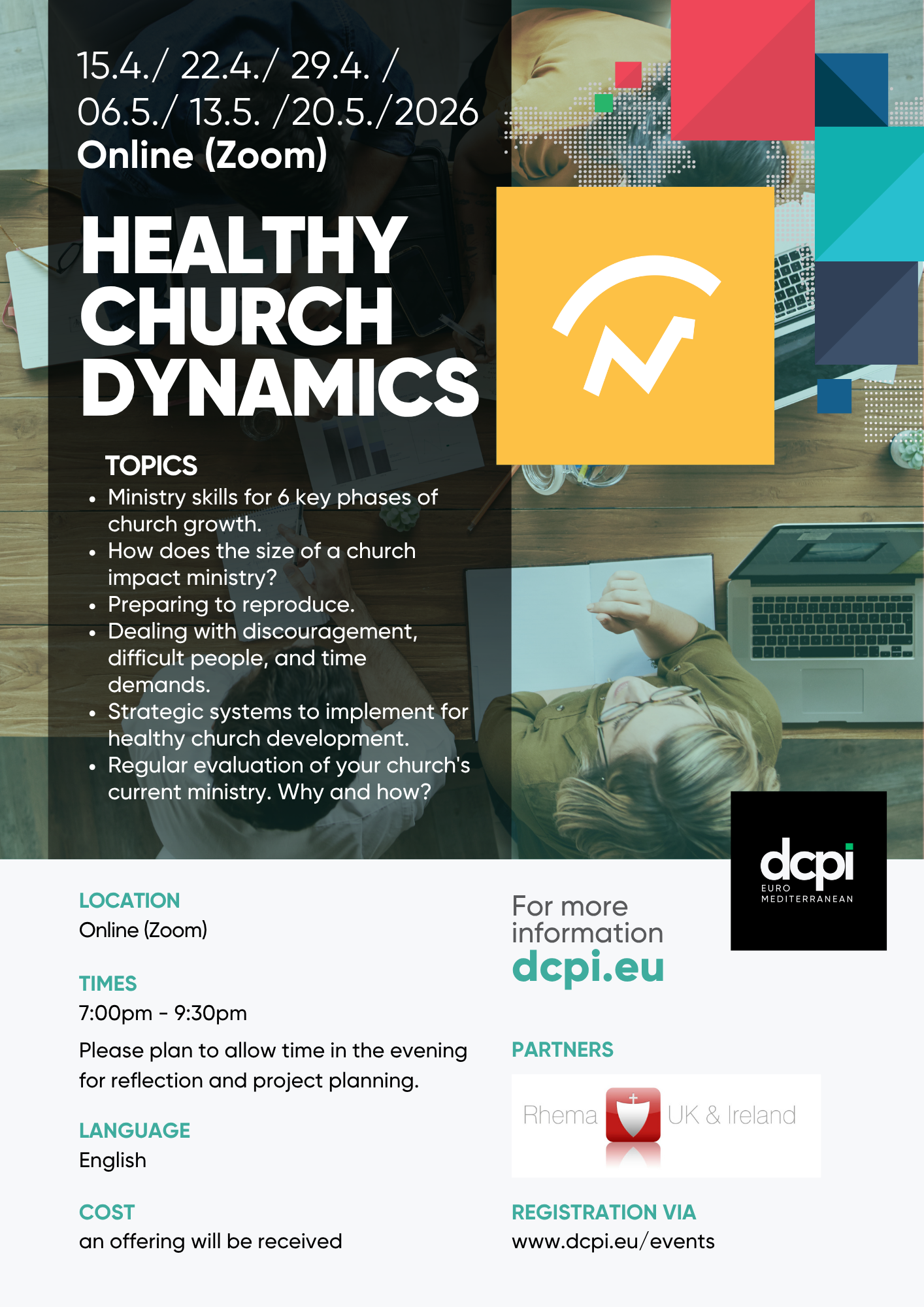 Dynamic Church Planting International (DCPI) is a 501(c)3 non-profit organization founded in 1994 in the USA with the vision of training leaders in every country of the world to plant dynamic churches to reach the world for Jesus. In 2023, we officially founded the DCPI Euro-Mediterranean non-profit to serve Euro-Med more effectively. We offer all of our trainings free of charge, so that hundreds of thousands of men and women called by God can take the Gospel to their tribes, tongues, and nations. We offer 8 tracks of training built upon biblical principles and actionable applications, so DCPI churches are effective and healthy. In 2021, we celebrated 1 MILLION churches!